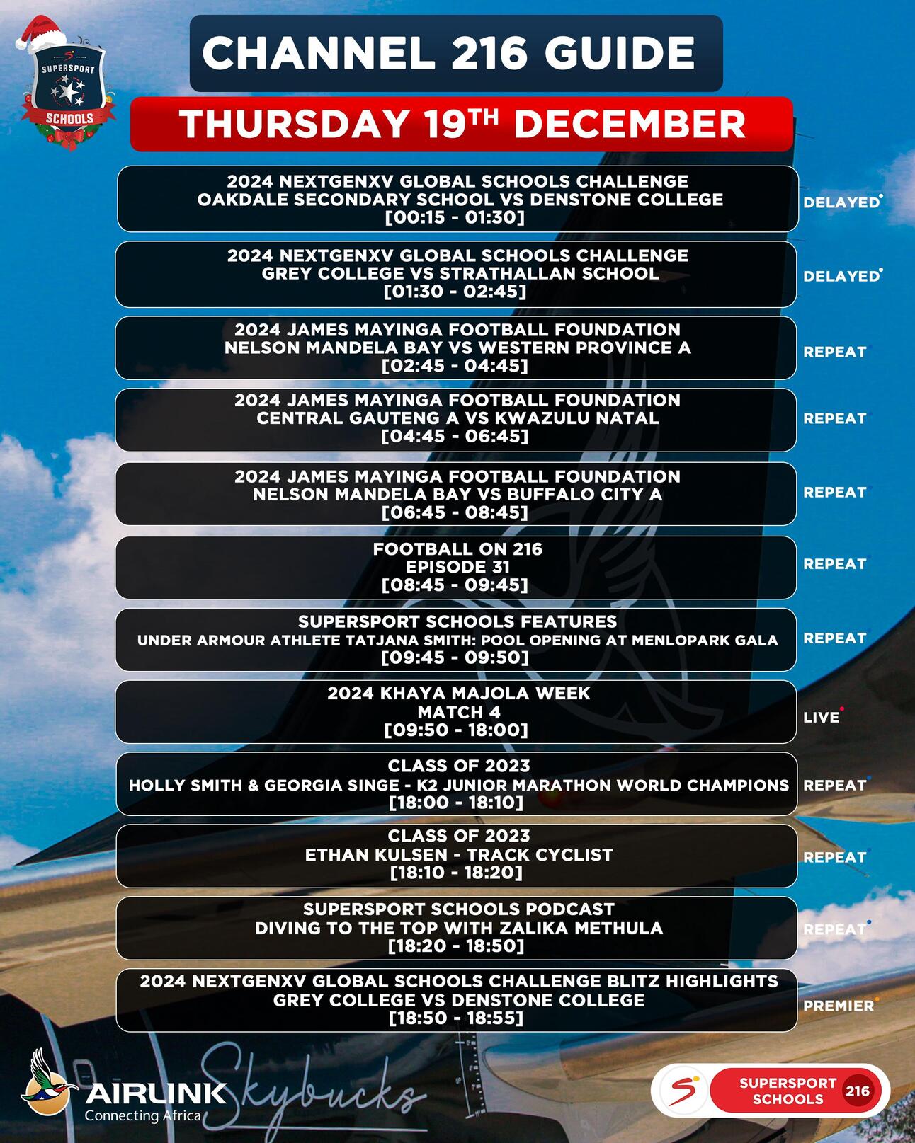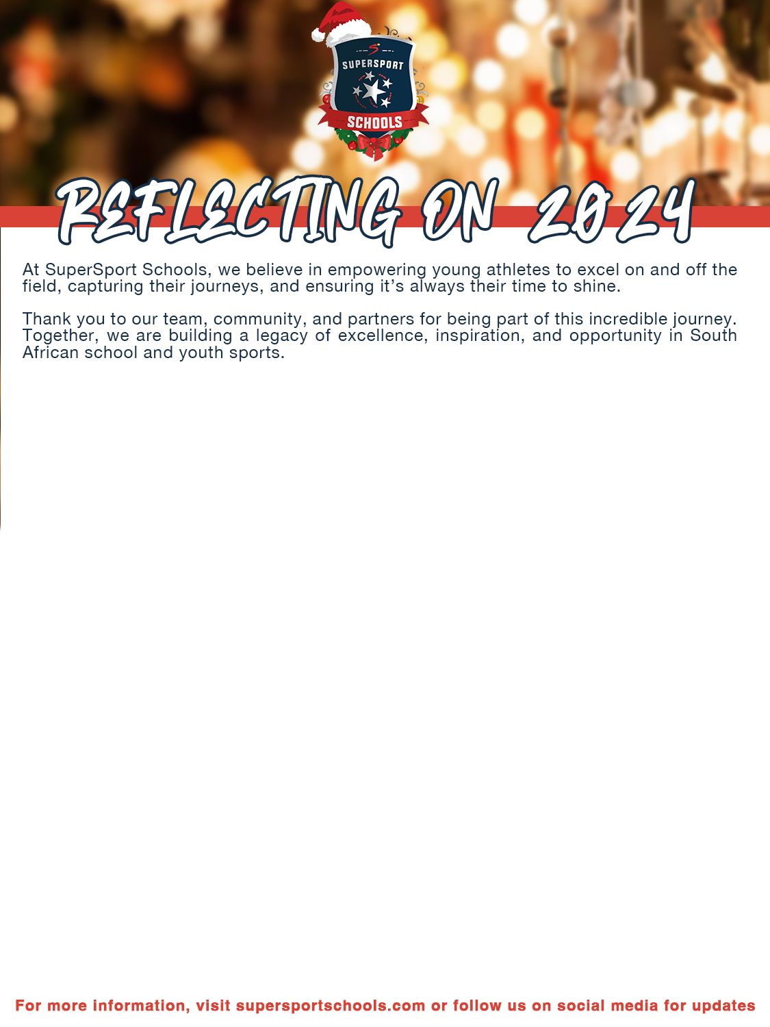 As we usher out 2024, we look forward to bringing you some of the best school and youth sports content available in 2025. Be sure to catch ALL the action on the SuperSport Schools App and DStv Channel 216 in the new year, we’re always committed to bringing you all the sport you care about most! Be sure to take a look at our Linktree and see what fixtures, events, and other content we have coming your way on SuperSport Schools.